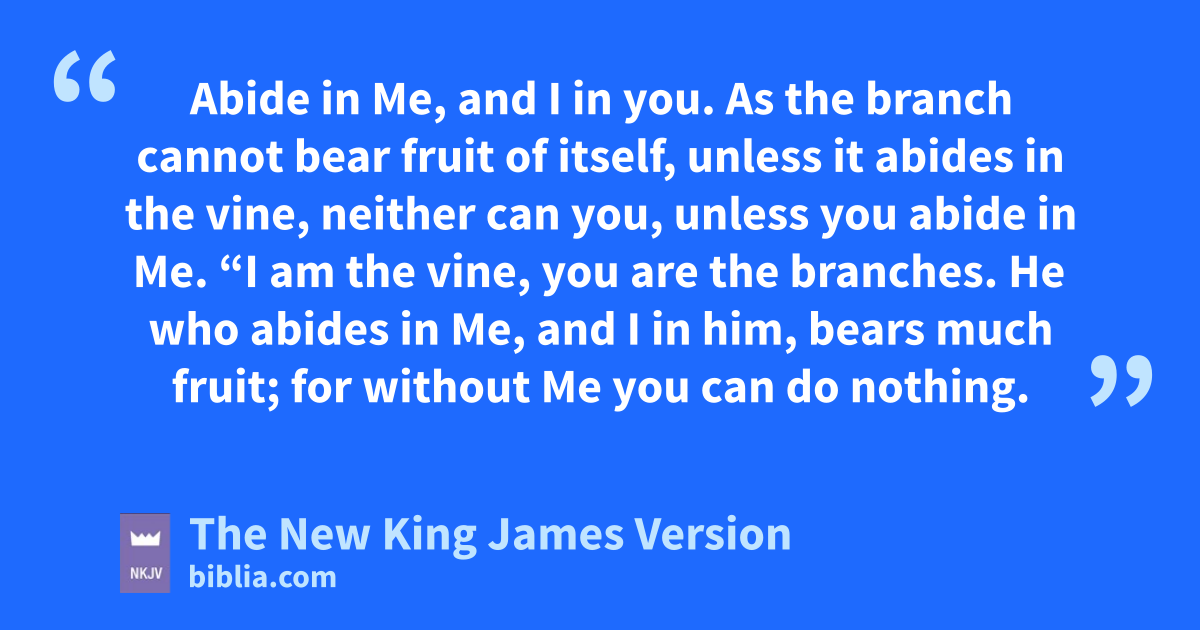 5 “I am the vine, you are the branches. He who abides in Me, and I in him, bears much efruit; for without Me you can do fnothing. 6 If anyone does not abide in Me, ghe is cast out as a branch and is withered; and they gather them and throw them into the fire, and they are burned. 7 If you abide in Me, and My words habide in you, iyou 2will ask what you desire, and it shall be done for you. 8 jBy this My Father is glorified, that you bear much fruit; kso you will be My disciples.