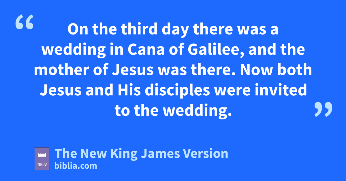 2 On the third day there was a awedding in bCana of Galilee, and the cmother of Jesus was there. 2 Now both Jesus and His disciples were invited to the wedding. 3 And when they ran out of wine, the mother of Jesus said to Him, “They have no wine.”