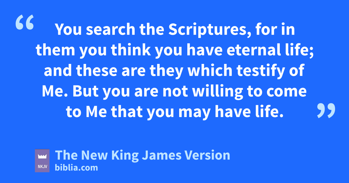 39 oYou search the Scriptures, for in them you think you have eternal life; and pthese are they which testify of Me. 40 qBut you are not willing to come to Me that you may have life.