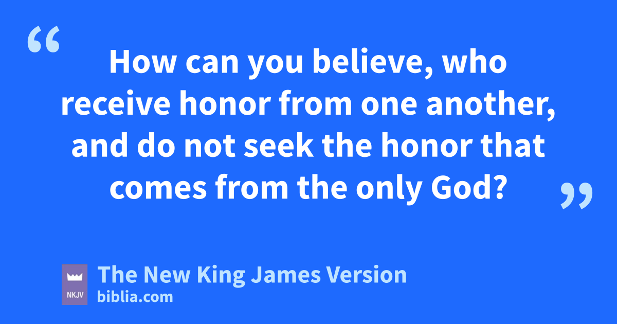 41 r“I do not receive honor from men. 42 But I know you, that you do not have the love of God in you. 43 I have come in My Father’s name, and you do not receive Me; if another comes in his own name, him you will receive. 44 sHow can you believe, who receive honor from one another, and do not seek tthe honor that comes from the only God? 45 Do not think that I shall accuse you to the Father; uthere is one who accuses you—Moses, in whom you trust. 46 For if you believed Moses, you would believe Me; vfor he wrote about Me. 47 But if you wdo not believe his writings, how will you believe My words?”