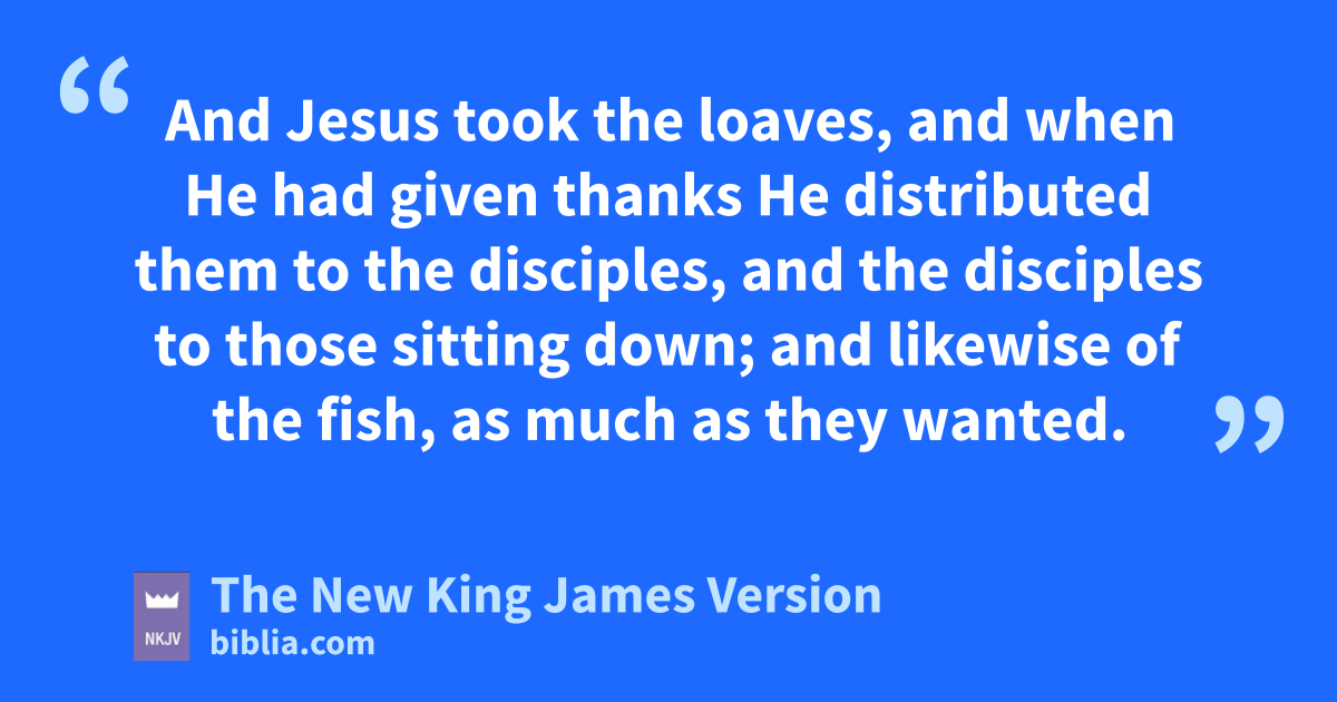 10 Then Jesus said, “Make the people sit down.” Now there was much grass in the place. So the men sat down, in number about five thousand. 11 And Jesus took the loaves, and when He had given thanks He distributed them 2to the disciples, and the disciples to those sitting down; and likewise of the fish, as much as they wanted. 12 So when they were filled, He said to His disciples, “Gather up the fragments that remain, so that nothing is lost.” 13 Therefore they gathered them up, and filled twelve baskets with the fragments of the five barley loaves which were left over by those who had eaten. 14 Then those men, when they had seen the sign that Jesus did, said, “This is truly jthe Prophet who is to come into the world.”