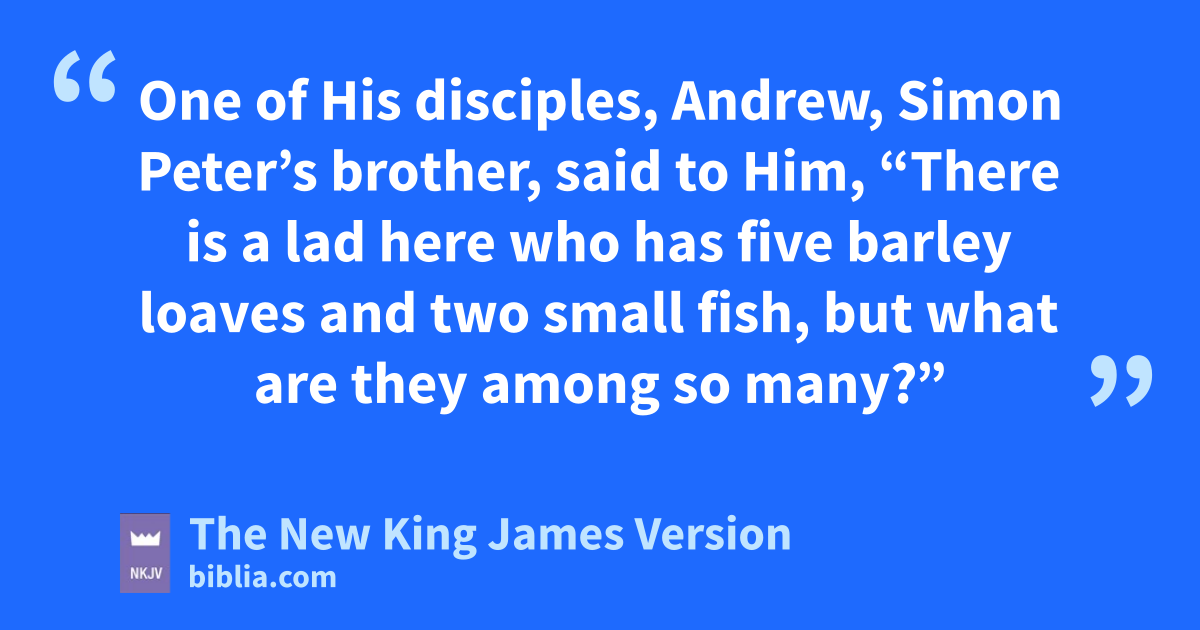 8 One of His disciples, hAndrew, Simon Peter’s brother, said to Him, 9 “There is a lad here who has five barley loaves and two small fish, ibut what are they among so many?”