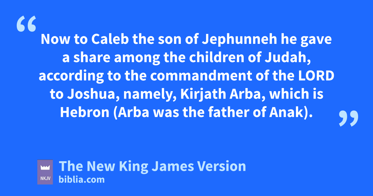 13 uNow to Caleb the son of Jephunneh he gave a share among the children of vJudah, according to the commandment of the Lord to Joshua, namely, wKirjath Arba, which is Hebron (Arba was the father of Anak). 14 Caleb drove out xthe three sons of Anak from there: ySheshai, Ahiman, and Talmai, the children of Anak. 15 Then zhe went up from there to the inhabitants of Debir (formerly the name of Debir was Kirjath Sepher).