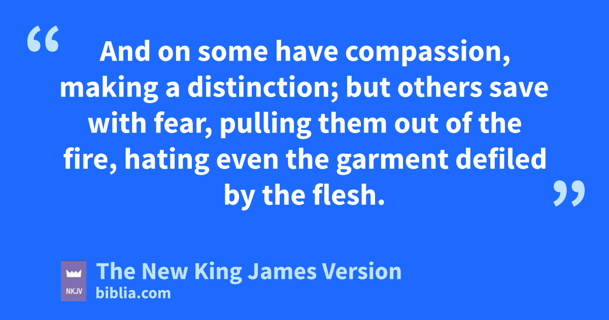22 And on some have compassion, 1making a distinction; 23 but aothers save 2with fear, bpulling them out of the 3fire, hating even cthe garment defiled by the flesh.