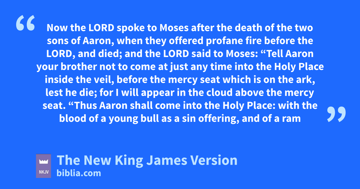 16 Now the Lord spoke to Moses after athe death of the two sons of Aaron, when they offered profane fire before the Lord, and died; 2 and the Lord said to Moses: “Tell Aaron your brother bnot to come at just any time into the Holy Place inside the veil, before the mercy seat which is on the ark, lest he die; for cI will appear in the cloud above the mercy seat.
