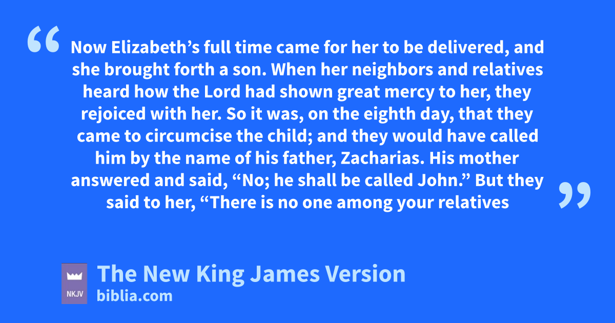 59 So it was, lon the eighth day, that they came to circumcise the child; and they would have called him by the name of his father, Zacharias. 60 His mother answered and said, m“No; he shall be called John.”