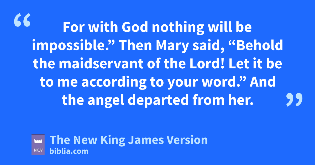 38 Then Mary said, “Behold the maidservant of the Lord! Let it be to me according to your word.” And the angel departed from her.
