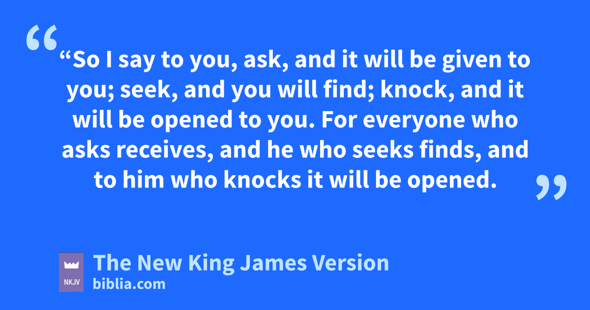 9 d“So I say to you, ask, and it will be given to you; eseek, and you will find; knock, and it will be opened to you. 10 For everyone who asks receives, and he who seeks finds, and to him who knocks it will be opened.
