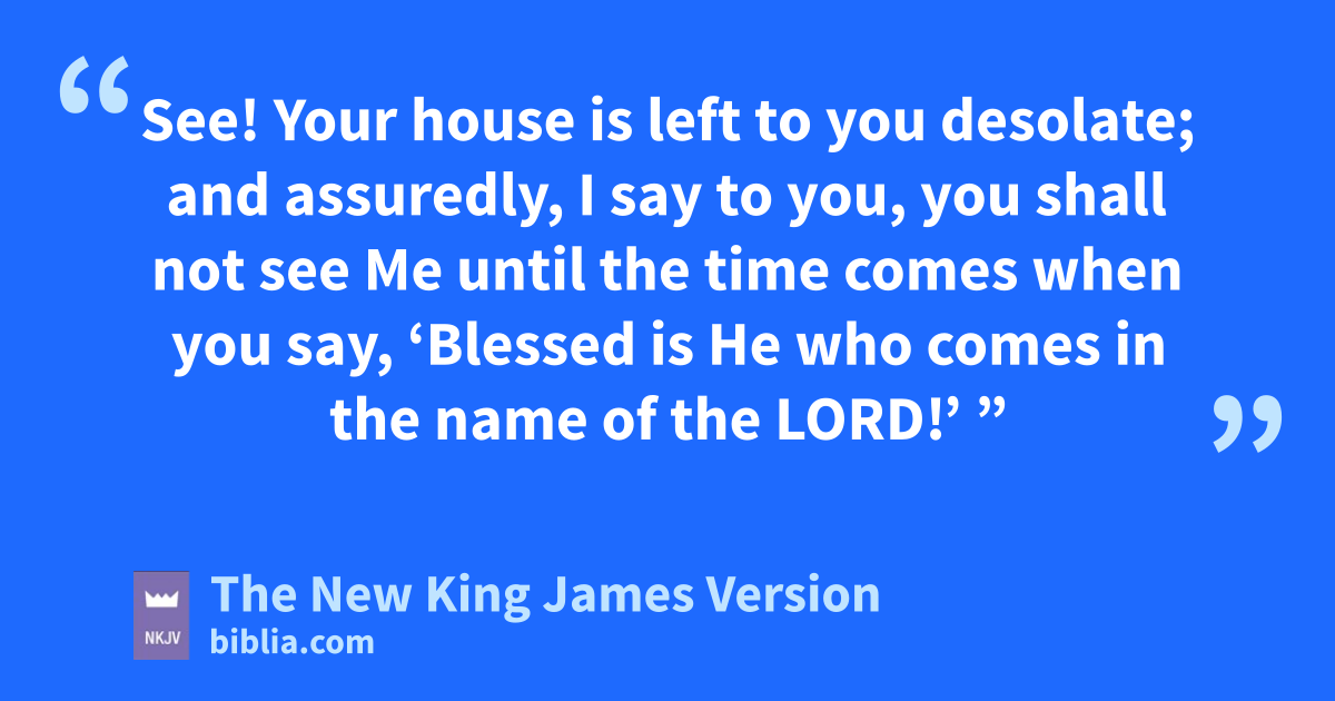 34 a“O Jerusalem, Jerusalem, the one who kills the prophets and stones those who are sent to her! How often I wanted to gather your children together, as a hen gathers her brood under her wings, but you were not willing! 35 See! bYour house is left to you desolate; and 2assuredly, I say to you, you shall not see Me until the time comes when you say, c‘Blessed is He who comes in the name of the Lord!’ ”