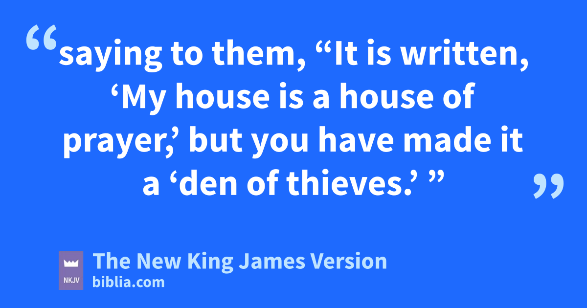45 kThen He went into the temple and began to drive out those who 8bought and sold in it, 46 saying to them, “It is written, l‘My house 9is a house of prayer,’ but you have made it a m‘den of thieves.’ ”