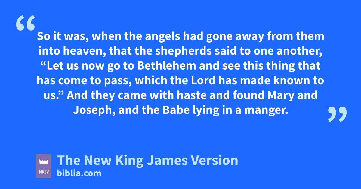 15 So it was, when the angels had gone away from them into heaven, that the shepherds said to one another, “Let us now go to Bethlehem and see this thing that has come to pass, which the Lord has made known to us.” 16 And they came with haste and found Mary and Joseph, and the Babe lying in a manger. 17 Now when they had seen Him, they made 6widely known the saying which was told them concerning this Child. 18 And all those who heard it marveled at those things which were told them by the shepherds. 19 pBut Mary kept all these things and pondered them in her heart. 20 Then the shepherds returned, glorifying and qpraising God for all the things that they had heard and seen, as it was told them.
