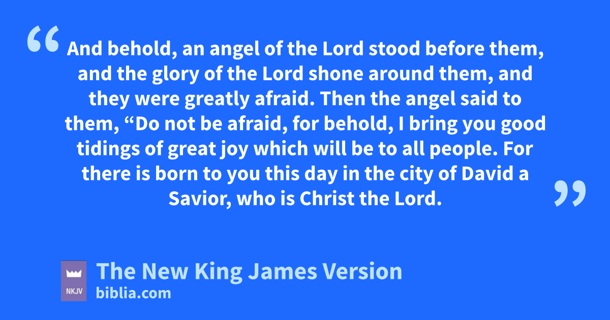 8 Now there were in the same country shepherds living out in the fields, keeping watch over their flock by night. 9 And 3behold, an angel of the Lord stood before them, and the glory of the Lord shone around them, fand they were greatly afraid. 10 Then the angel said to them, g“Do not be afraid, for behold, I bring you good tidings of great joy hwhich will be to all people. 11 iFor there is born to you this day in the city of David ja Savior, kwho is Christ the Lord. 12 And this will be the sign to you: You will find a Babe wrapped in swaddling cloths, lying in a 4manger.”