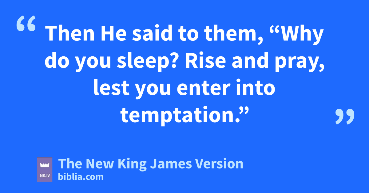 45 When He rose up from prayer, and had come to His disciples, He found them sleeping from sorrow. 46 Then He said to them, “Why rdo you sleep? Rise and spray, lest you enter into temptation.”