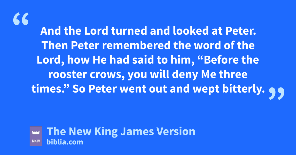 Immediately, while he was still speaking, 8the rooster crowed. 61 And the Lord turned and looked at Peter. Then hPeter remembered the word of the Lord, how He had said to him, i“Before the rooster 9crows, you will deny Me three times.” 62 So Peter went out and wept bitterly.