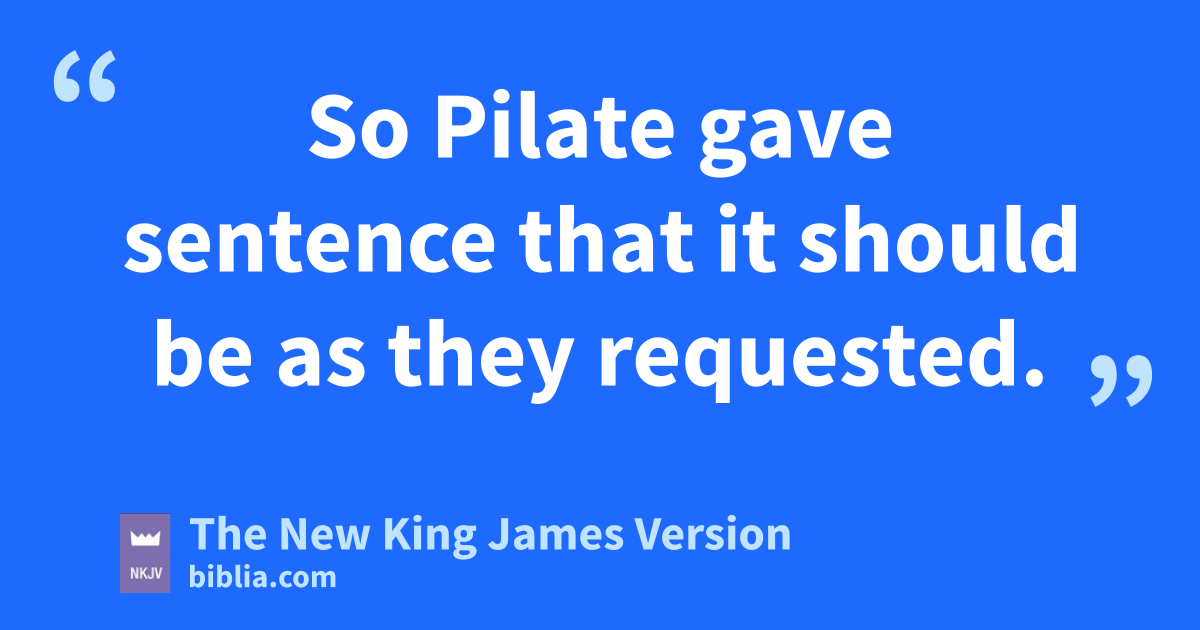 23 But they were insistent, demanding with loud voices that He be crucified. And the voices of these men 6and of the chief priests prevailed. 24 So vPilate gave sentence that it should be as they requested. 25 wAnd he released 7to them the one they requested, who for rebellion and murder had been thrown into prison; but he delivered Jesus to their will.