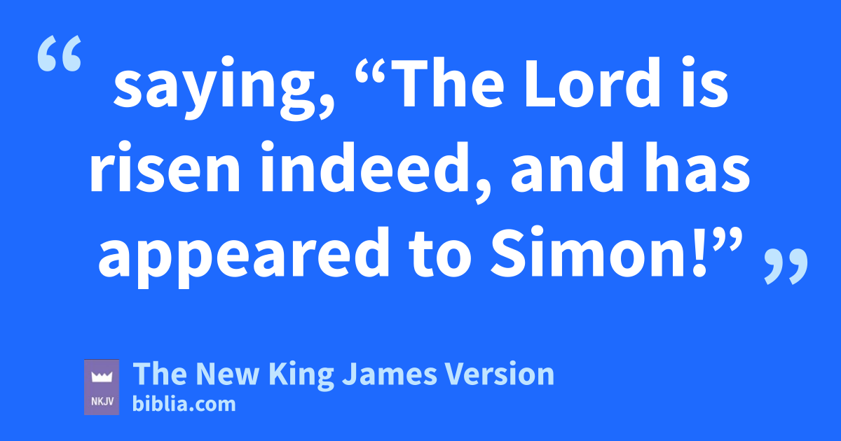 33 So they rose up that very hour and returned to Jerusalem, and found the eleven and those who were with them gathered together, 34 saying, “The Lord is risen indeed, and ehas appeared to Simon!” 35 And they told about the things that had happened on the road, and how He was 9known to them in the breaking of bread.