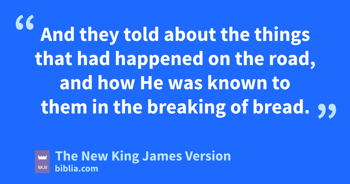 33 So they rose up that very hour and returned to Jerusalem, and found the eleven and those who were with them gathered together, 34 saying, “The Lord is risen indeed, and ehas appeared to Simon!” 35 And they told about the things that had happened on the road, and how He was 9known to them in the breaking of bread.