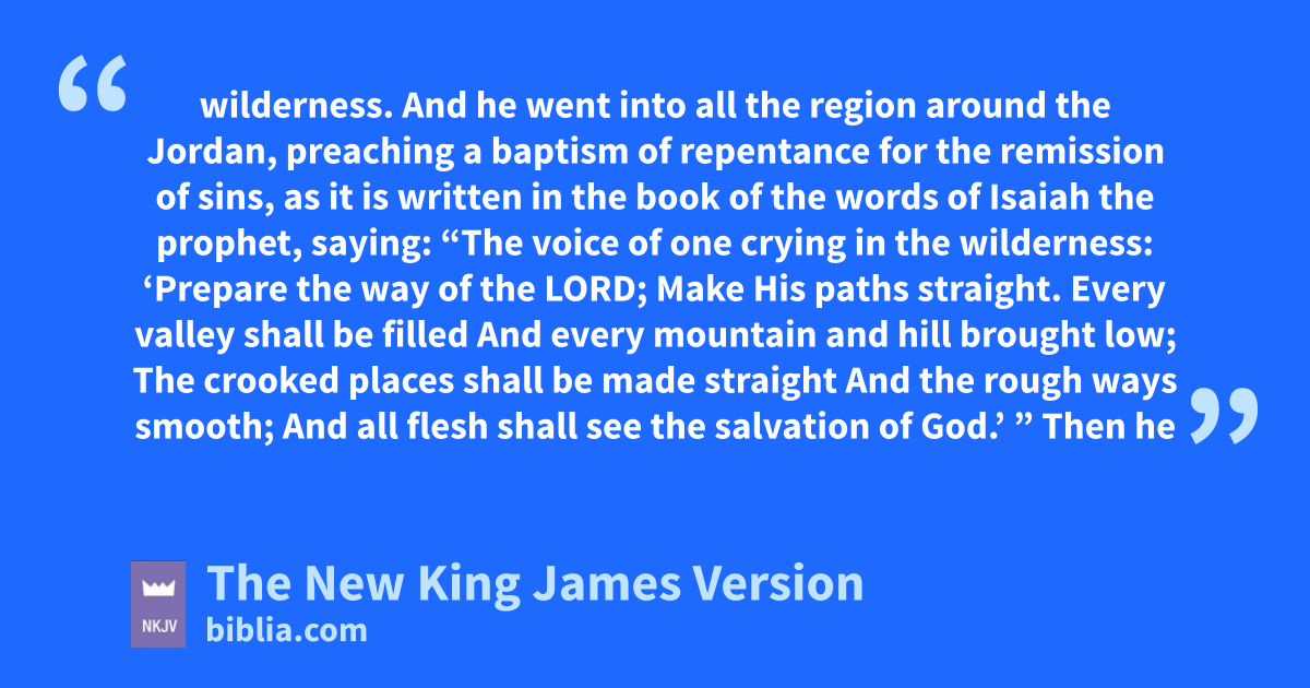 3 Now in the fifteenth year of the reign of Tiberius Caesar, aPontius Pilate being governor of Judea, Herod being tetrarch of Galilee, his brother Philip tetrarch of Iturea and the region of Trachonitis, and Lysanias tetrarch of Abilene, 2 1while bAnnas and Caiaphas were high priests, the word of God came to cJohn the son of Zacharias in the wilderness. 3 dAnd he went into all the region around the Jordan, preaching a baptism of repentance efor the remission of sins, 4 as it is written in the book of the words of Isaiah the prophet, saying: