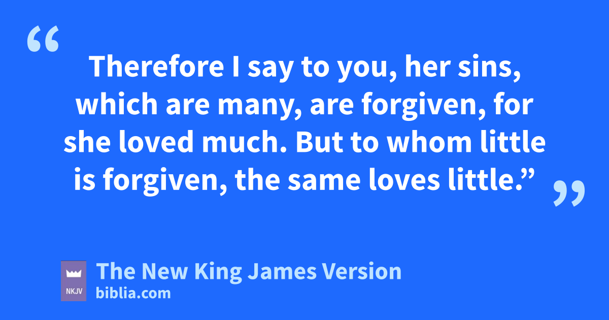 And He said to him, “You have rightly judged.” 44 Then He turned to the woman and said to Simon, “Do you see this woman? I entered your house; you gave Me no iwater for My feet, but she has washed My feet with her tears and wiped them with the hair of her head. 45 You gave Me no jkiss, but this woman has not ceased to kiss My feet since the time I came in. 46 kYou did not anoint My head with oil, but this woman has anointed My feet with fragrant oil. 47 lTherefore I say to you, her sins, which are many, are forgiven, for she loved much. But to whom little is forgiven, the same loves little.”