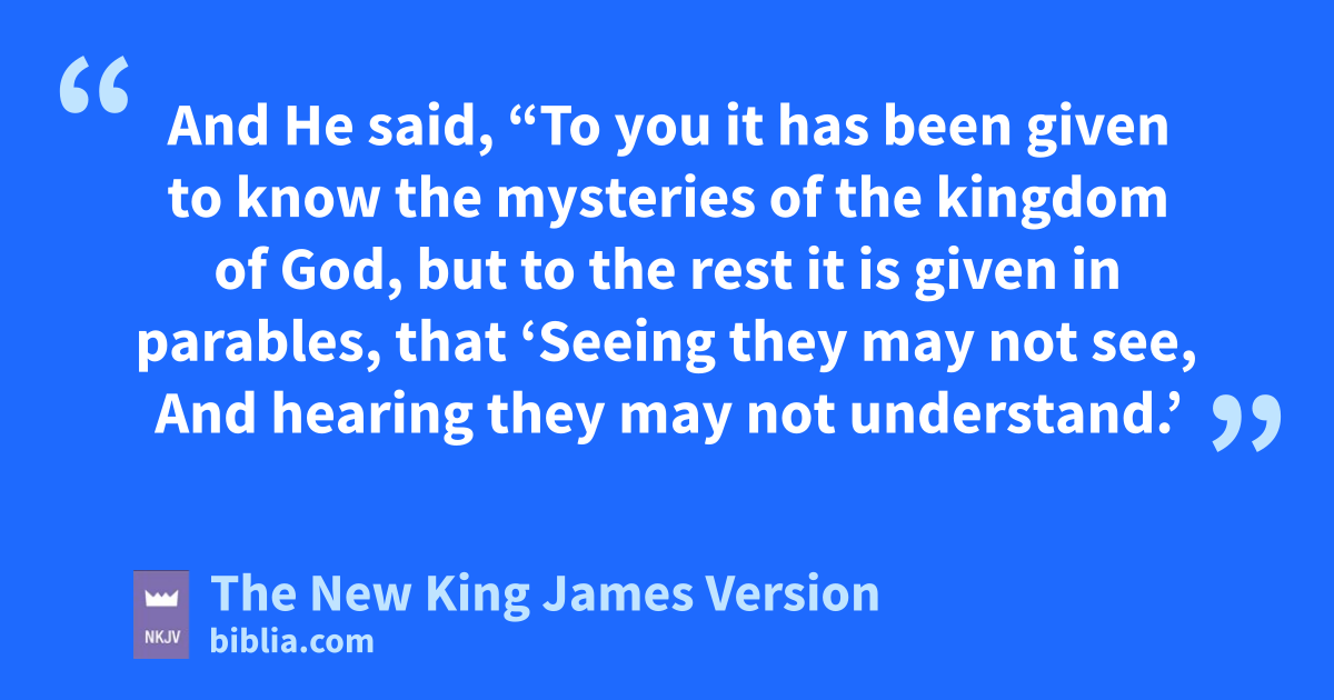 10 And He said, “To you it has been given to know the 6mysteries of the kingdom of God, but to the rest it is given in parables, that