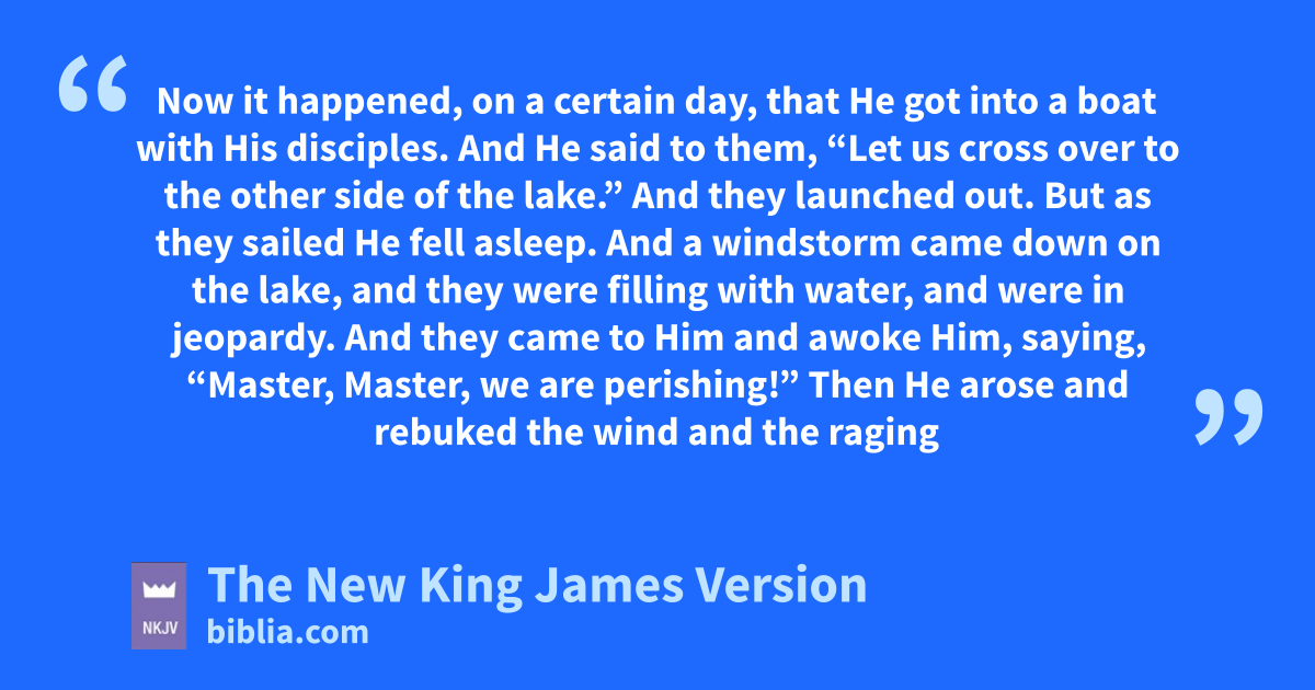 22 rNow it happened, on a certain day, that He got into a boat with His disciples. And He said to them, “Let us cross over to the other side of the lake.” And they launched out. 23 But as they sailed He fell asleep. And a windstorm came down on the lake, and they were filling with water, and were in 1jeopardy. 24 And they came to Him and awoke Him, saying, “Master, Master, we are perishing!”