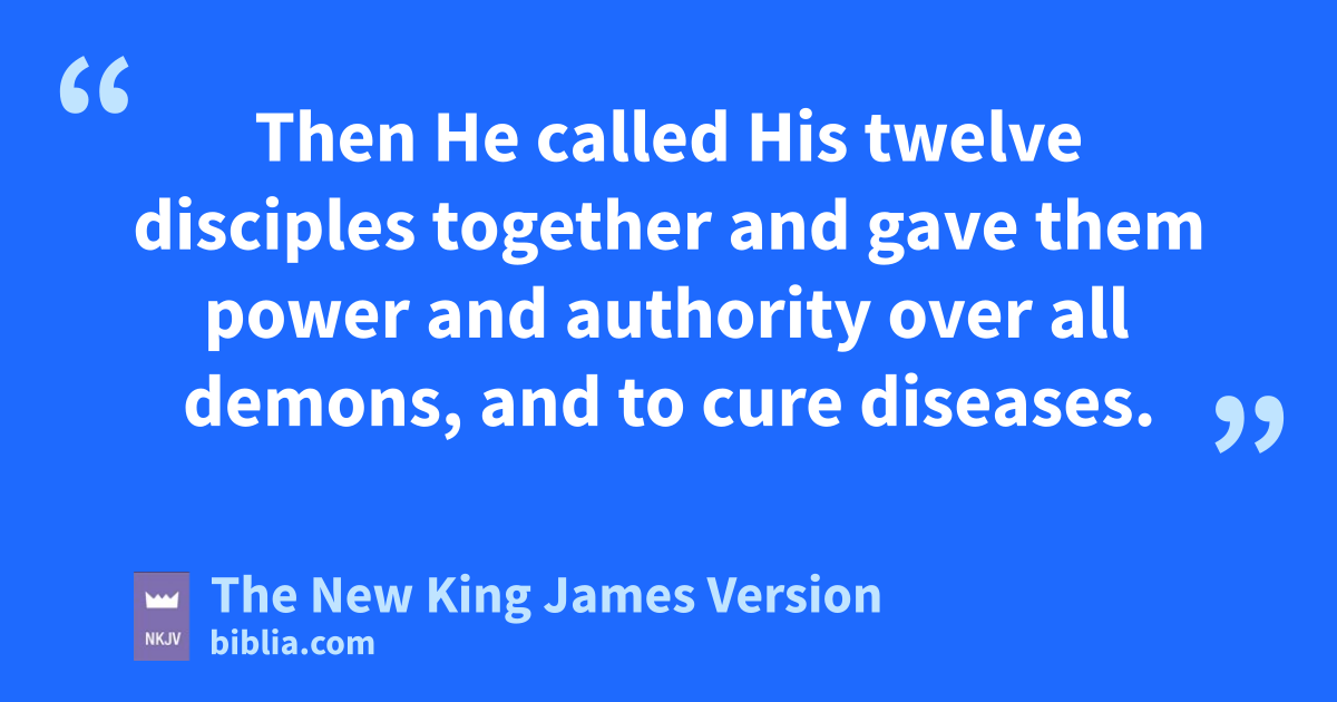9 Then aHe called His twelve disciples together and bgave them power and authority over all demons, and to cure diseases. 2 cHe sent them to preach the kingdom of God and to heal the sick. 3 dAnd He said to them, “Take nothing for the journey, neither staffs nor bag nor bread nor money; and do not have two tunics apiece.