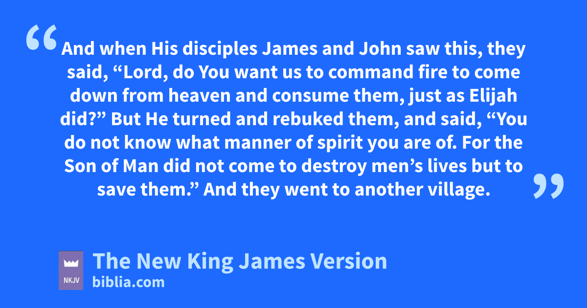 55 But He turned and rebuked them, 2and said, “You do not know what manner of xspirit you are of. 56 3For ythe Son of Man did not come to destroy men’s lives but to save them.” And they went to another village.