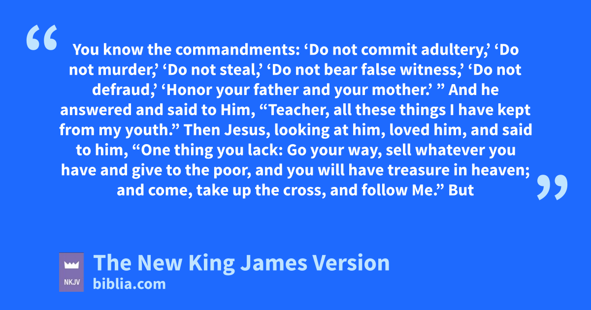 18 So Jesus said to him, “Why do you call Me good? No one is good but One, that is, mGod. 19 You know the commandments: n‘Do not commit adultery,’ ‘Do not murder,’ ‘Do not steal,’ ‘Do not bear false witness,’ ‘Do not defraud,’ ‘Honor your father and your mother.’ ”