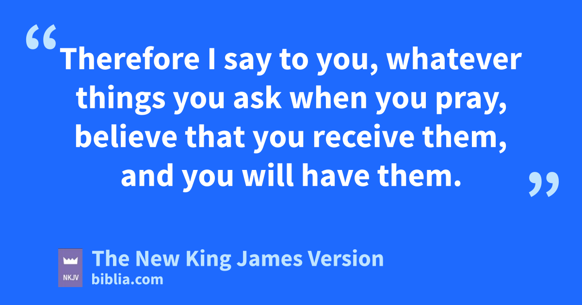 22 So Jesus answered and said to them, “Have faith in God. 23 For oassuredly, I say to you, whoever says to this mountain, ‘Be removed and be cast into the sea,’ and does not doubt in his heart, but believes that those things he says will be done, he will have whatever he says. 24 Therefore I say to you, pwhatever things you ask when you pray, believe that you receive them, and you will have them.