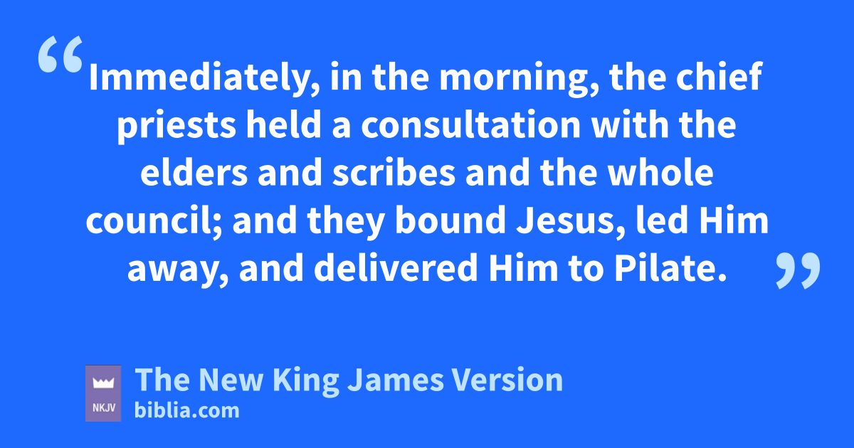 15 Immediately, ain the morning, the chief priests held a consultation with the elders and scribes and the whole council; and they bound Jesus, led Him away, and bdelivered Him to Pilate. 2 cThen Pilate asked Him, “Are You the King of the Jews?”