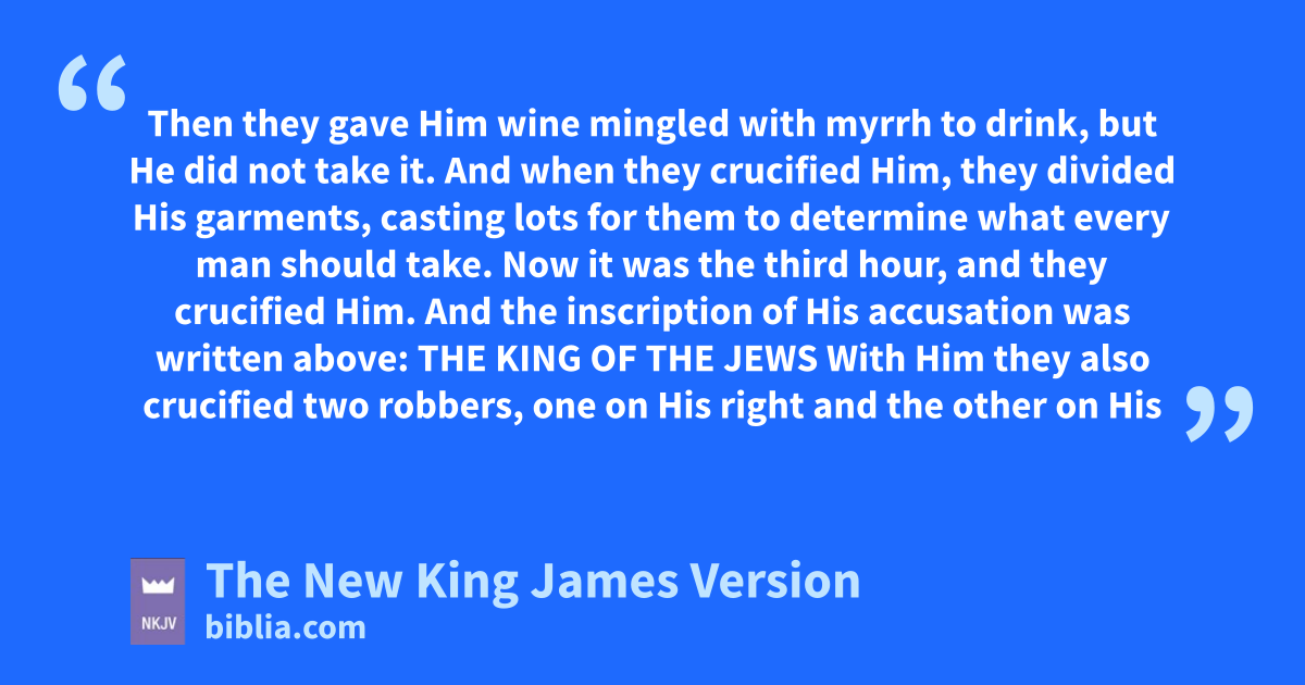 21 pThen they compelled a certain man, Simon a Cyrenian, the father of Alexander and Rufus, as he was coming out of the country and passing by, to bear His cross. 22 qAnd they brought Him to the place Golgotha, which is translated, Place of a Skull. 23 rThen they gave Him wine mingled with myrrh to drink, but He did not take it.
