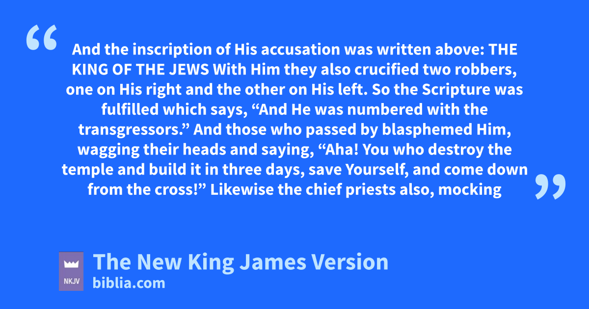 29 And xthose who passed by blasphemed Him, ywagging their heads and saying, “Aha! zYou who destroy the temple and build it in three days, 30 save Yourself, and come down from the cross!”