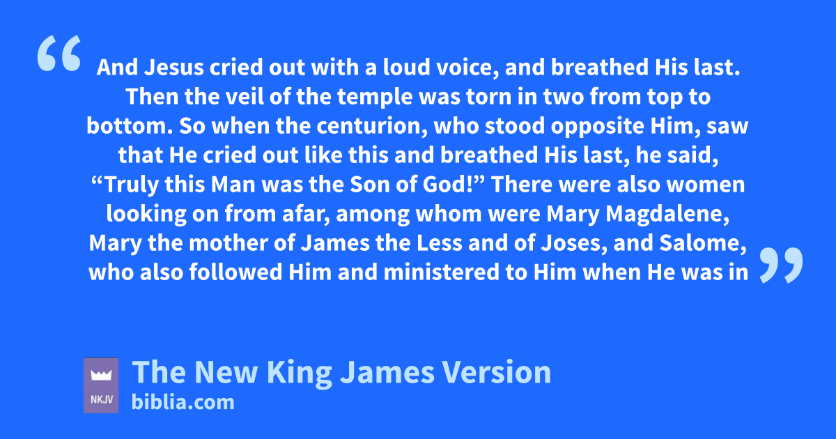 38 Then ithe veil of the temple was torn in two from top to bottom. 39 So jwhen the centurion, who stood opposite Him, saw that 7He cried out like this and breathed His last, he said, “Truly this Man was the Son of God!”