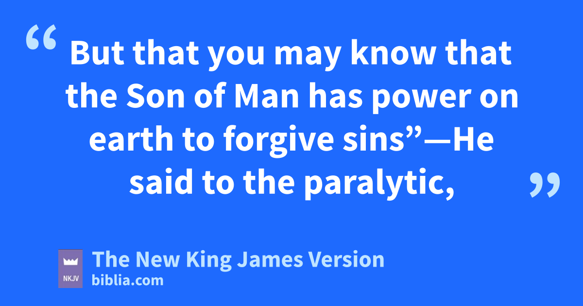 8 But immediately, when Jesus perceived in His spirit that they reasoned thus within themselves, He said to them, “Why do you reason about these things in your hearts? 9 dWhich is easier, to say to the paralytic, ‘Your sins are forgiven you,’ or to say, ‘Arise, take up your bed and walk’? 10 But that you may know that the Son of Man has 2power on earth to forgive sins”—He said to the paralytic, 11 “I say to you, arise, take up your bed, and go to your house.” 12 Immediately he arose, took up the bed, and went out in the presence of them all, so that all were amazed and eglorified God, saying, “We never saw anything like this!”