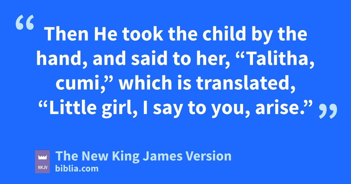 40 And they ridiculed Him. zBut when He had put them all outside, He took the father and the mother of the child, and those who were with Him, and entered where the child was lying. 41 Then He took the child by the hand, and said to her, “Talitha, cumi,” which is translated, “Little girl, I say to you, arise.” 42 Immediately the girl arose and walked, for she was twelve years of age. And they were aovercome with great amazement. 43 But bHe commanded them strictly that no one should know it, and said that something should be given her to eat.