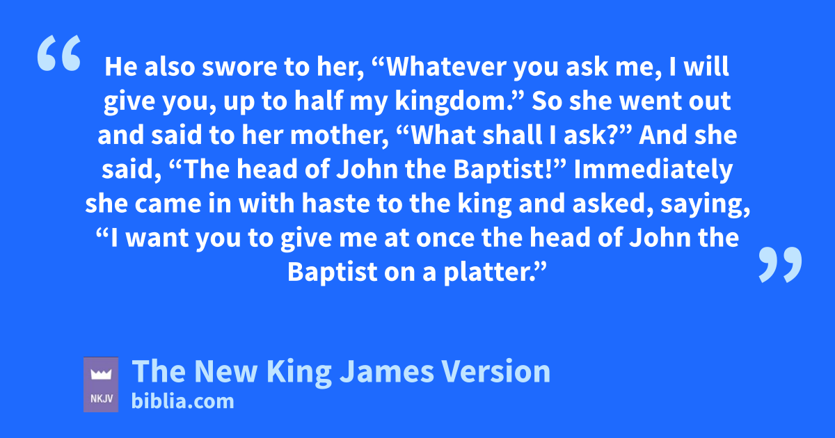 25 Immediately she came in with haste to the king and asked, saying, “I want you to give me at once the head of John the Baptist on a platter.”