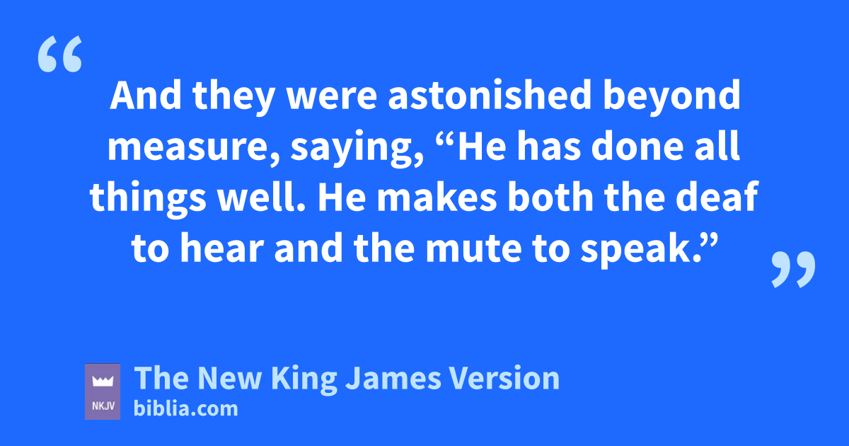 35 iImmediately his ears were opened, and the 3impediment of his tongue was loosed, and he spoke plainly. 36 Then jHe commanded them that they should tell no one; but the more He commanded them, the more widely they proclaimed it. 37 And they were kastonished beyond measure, saying, “He has done all things well. He lmakes both the deaf to hear and the mute to speak.”