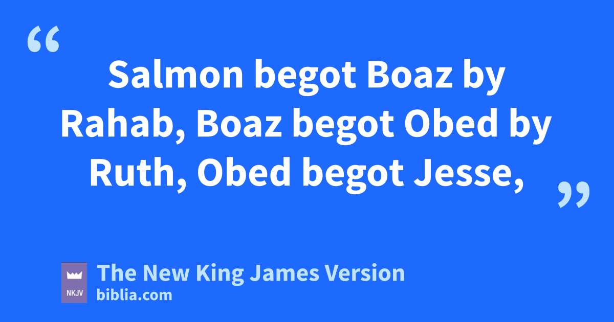 2 dAbraham begot Isaac, eIsaac begot Jacob, and Jacob begot fJudah and his brothers. 3 gJudah begot Perez and Zerah by Tamar, hPerez begot Hezron, and Hezron begot Ram. 4 Ram begot Amminadab, Amminadab begot Nahshon, and Nahshon begot Salmon. 5 Salmon begot iBoaz by Rahab, Boaz begot Obed by Ruth, Obed begot Jesse, 6 and jJesse begot David the king.