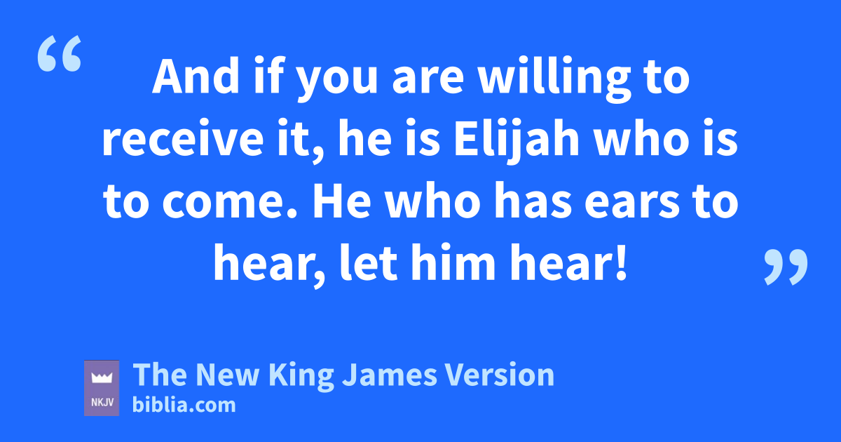 11 “Assuredly, I say to you, among those born of women there has not risen one greater than John the Baptist; but he who is least in the kingdom of heaven is greater than he. 12 lAnd from the days of John the Baptist until now the kingdom of heaven suffers violence, and the violent take it by force. 13 mFor all the prophets and the law prophesied until John. 14 And if you are willing to receive it, he is nElijah who is to come. 15 oHe who has ears to hear, let him hear!