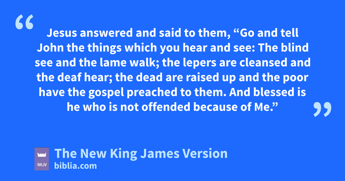 4 Jesus answered and said to them, “Go and tell John the things which you hear and see: 5 eThe blind see and the lame walk; the lepers are cleansed and the deaf hear; the dead are raised up and fthe poor have the gospel preached to them. 6 And blessed is he who is not goffended because of Me.”