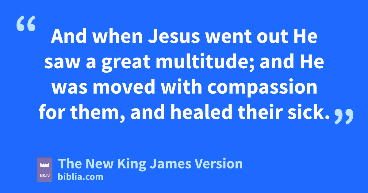 13 eWhen Jesus heard it, He departed from there by boat to a deserted place by Himself. But when the multitudes heard it, they followed Him on foot from the cities. 14 And when Jesus went out He saw a great multitude; and He fwas moved with compassion for them, and healed their sick. 15 gWhen it was evening, His disciples came to Him, saying, “This is a deserted place, and the hour is already late. Send the multitudes away, that they may go into the villages and buy themselves food.”
