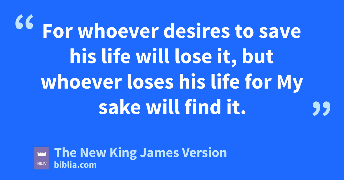 24 vThen Jesus said to His disciples, “If anyone desires to come after Me, let him deny himself, and take up his cross, and wfollow Me. 25 For xwhoever desires to save his life will lose it, but whoever loses his life for My sake will find it. 26 For what yprofit is it to a man if he gains the whole world, and loses his own soul? Or zwhat will a man give in exchange for his soul?