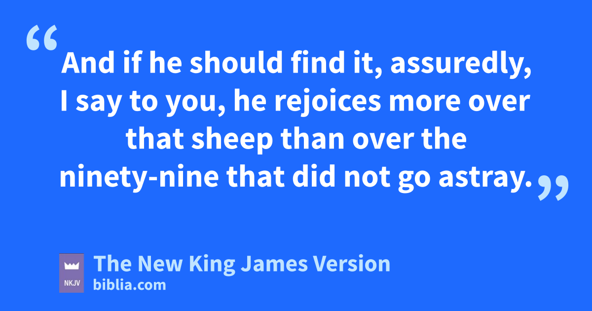 12 m“What do you think? If a man has a hundred sheep, and one of them goes astray, does he not leave the ninety-nine and go to the mountains to seek the one that is straying? 13 And if he should find it, assuredly, I say to you, he rejoices more over that sheep than over the ninety-nine that did not go astray. 14 Even so it is not the nwill of your Father who is in heaven that one of these little ones should perish.