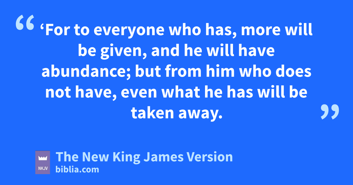 29 t‘For to everyone who has, more will be given, and he will have abundance; but from him who does not have, even what he has will be taken away. 30 And cast the unprofitable servant uinto the outer darkness. vThere will be weeping and wgnashing of teeth.’