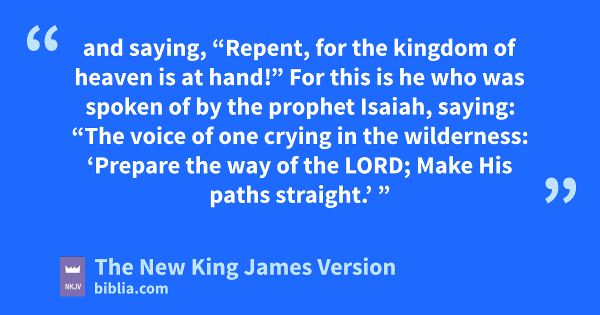 3 In those days aJohn the Baptist came preaching bin the wilderness of Judea, 2 and saying, “Repent, for cthe kingdom of heaven is at hand!” 3 For this is he who was spoken of by the prophet Isaiah, saying: