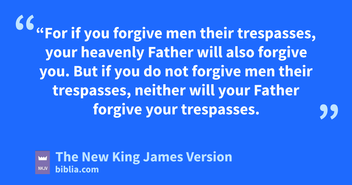 14 p“For if you forgive men their trespasses, your heavenly Father will also forgive you. 15 But qif you do not forgive men their trespasses, neither will your Father forgive your trespasses.