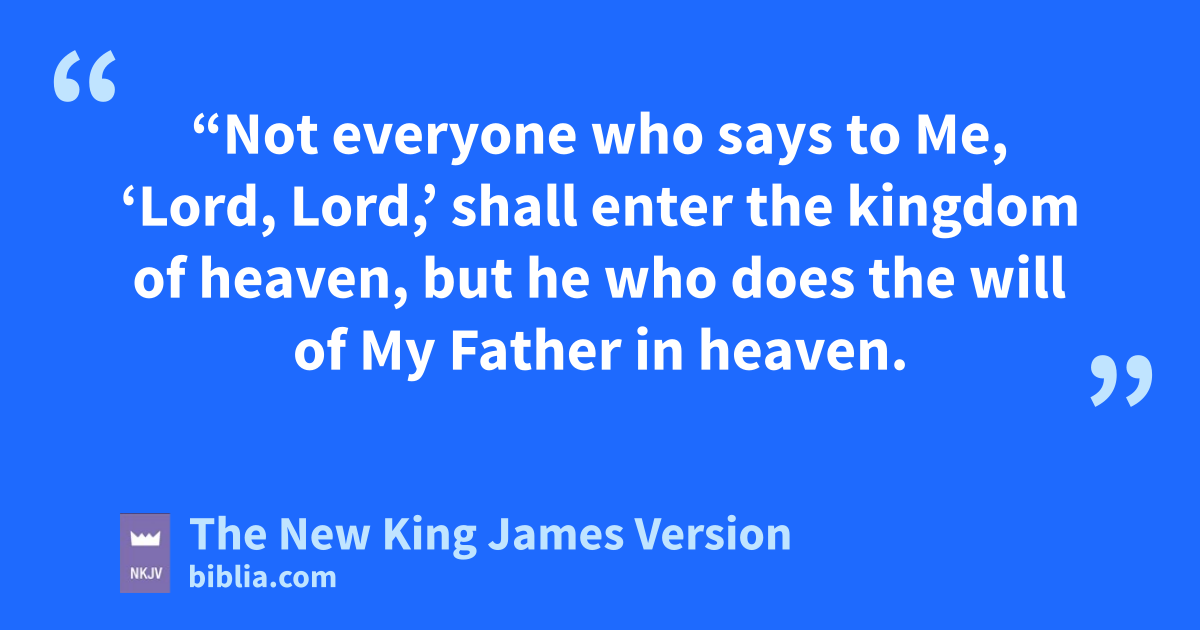 21 “Not everyone who says to Me, r‘Lord, Lord,’ shall enter the kingdom of heaven, but he who sdoes the will of My Father in heaven. 22 Many will say to Me in that day, ‘Lord, Lord, have we tnot prophesied in Your name, cast out demons in Your name, and done many wonders in Your name?’ 23 And uthen I will declare to them, ‘I never knew you; vdepart from Me, you who practice lawlessness!’