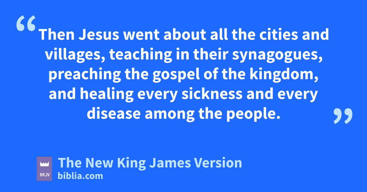35 Then Jesus went about all the cities and villages, eteaching in their synagogues, preaching the gospel of the kingdom, and healing every sickness and every disease 9among the people. 36 fBut when He saw the multitudes, He was moved with compassion for them, because they were 1weary and scattered, glike sheep having no shepherd. 37 Then He said to His disciples, h“The harvest truly is plentiful, but the laborers are few. 38 iTherefore pray the Lord of the harvest to send out laborers into His harvest.”
