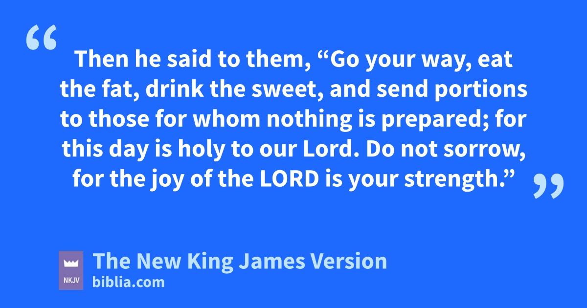 10 Then he said to them, “Go your way, eat the fat, drink the sweet, pand send portions to those for whom nothing is prepared; for this day is holy to our Lord. Do not sorrow, for the joy of the Lord is your strength.”