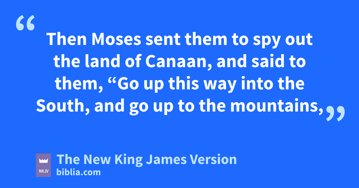17 Then Moses sent them to spy out the land of Canaan, and said to them, “Go up this way into the South, and go up to fthe mountains, 18 and see what the land is like: whether the people who dwell in it are strong or weak, few or many; 19 whether the land they dwell in is good or bad; whether the cities they inhabit are like camps or strongholds; 20 whether the land is 4rich or poor; and whether there are forests there or not. gBe of good courage. And bring some of the fruit of the land.” Now the time was the season of the first ripe grapes.